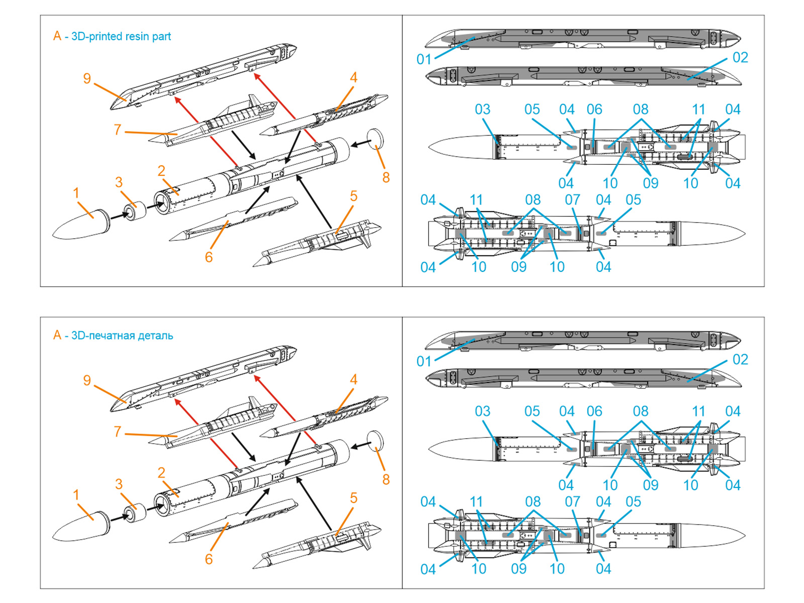 KH-31P Аnti-radar Missiles with Launchers, 2 pcs (for all kits)
