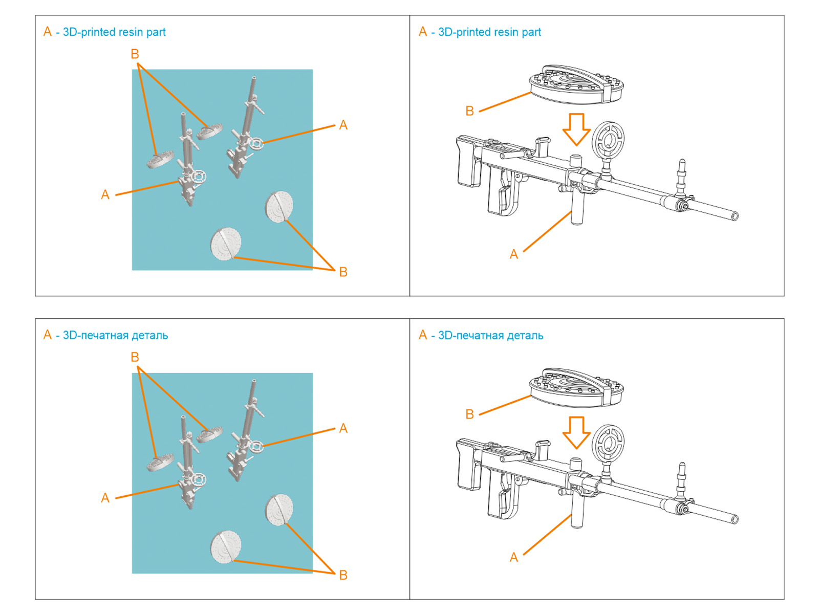 Te-4, WWII IJA Machine Gun, 2 pcs (for all kits)