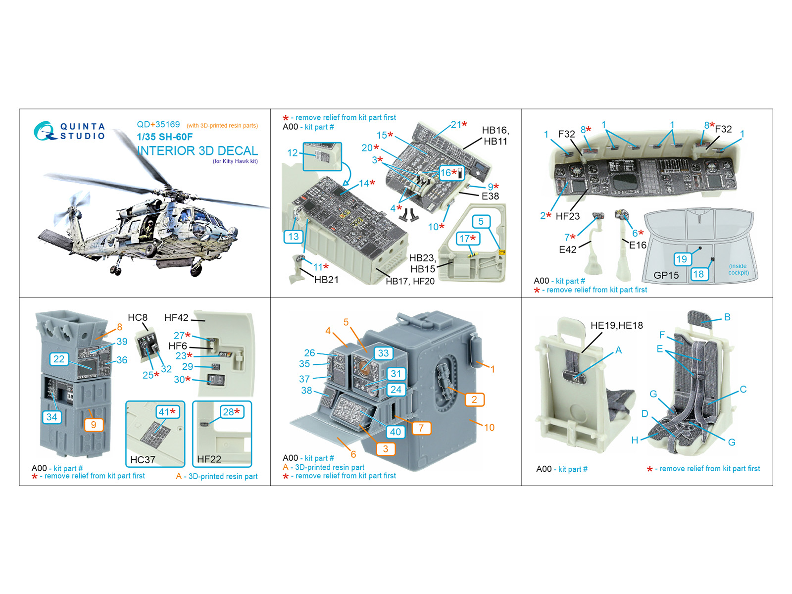 SH-60F Seahawk 3D-Printed & coloured Interior on decal paper (Kitty Hawk) (with 3D-printed resin parts)