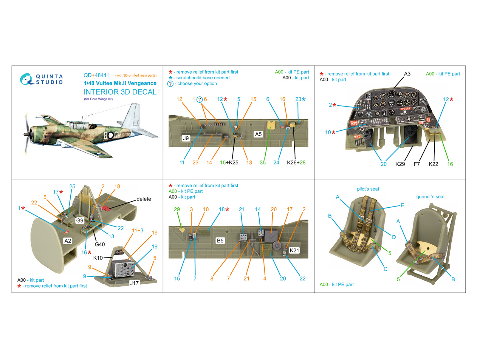 Vultee Mk.II Vengeance 3D-Printed & coloured Interior on decal paper (Dora Wings) (with 3D-printed resin parts)