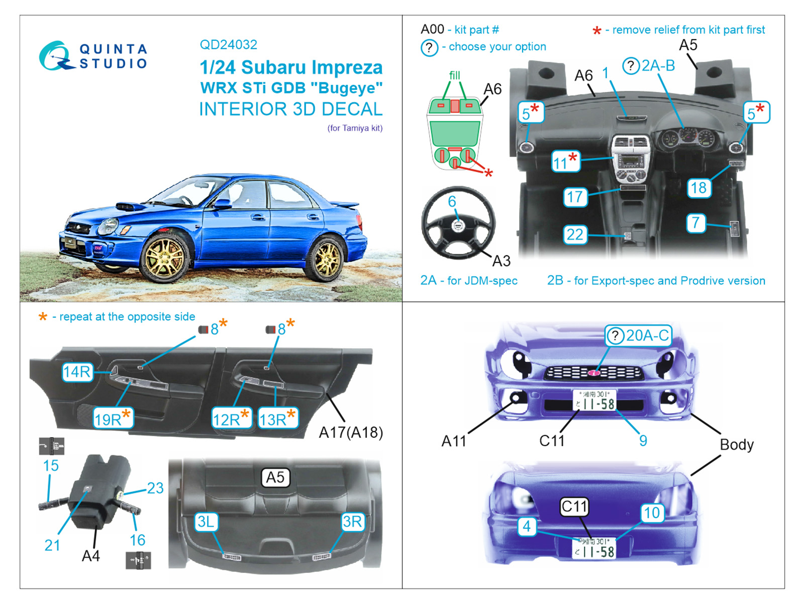 Subaru Impreza WRX STi GDB Bugeye 3D-Printed & coloured Interior on decal paper (Tamiya)