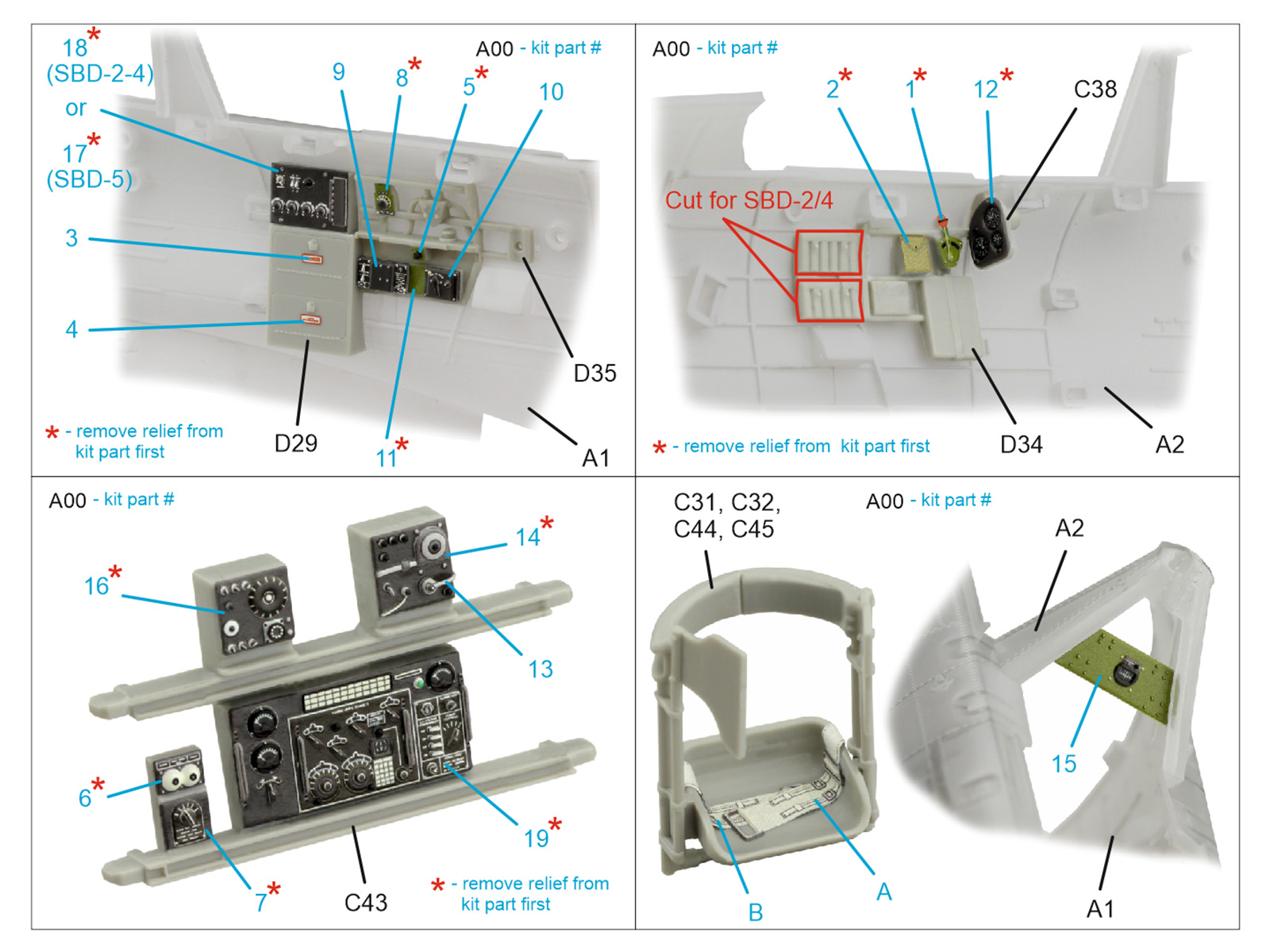 SBD Dauntless Family Rear Cockpit 3D-Printed & coloured Interior on decal paper (Trumpeter)