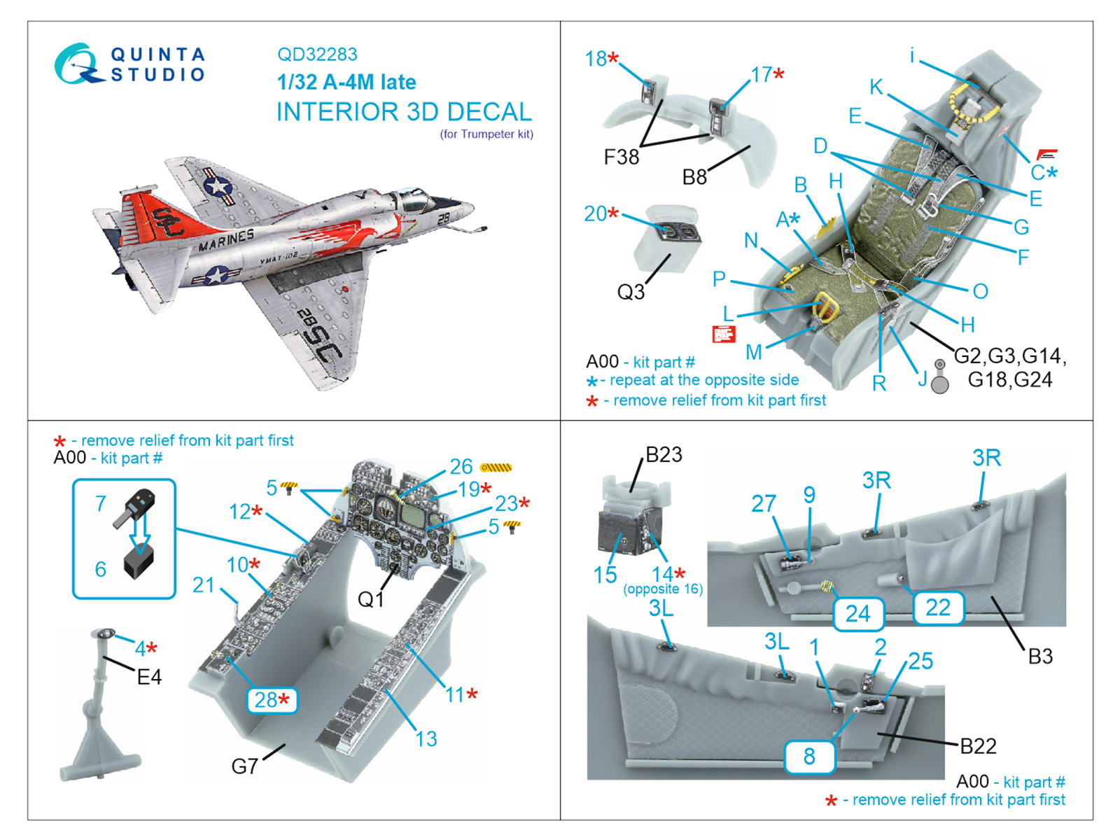 A-4M Late Skyhawk 3D-Printed & coloured Interior on decal paper (Trumpeter)