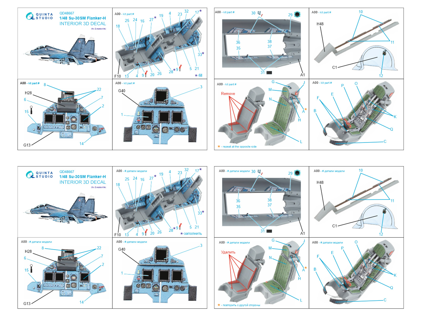 Su-30SM 3D-Printed & coloured Interior on decal paper (Zvezda)