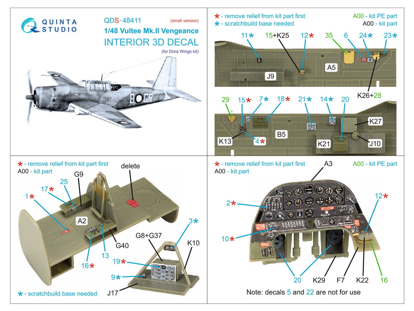 Vultee Mk.II Vengeance 3D-Printed & coloured Interior on decal paper (Dora Wings) (Small version)